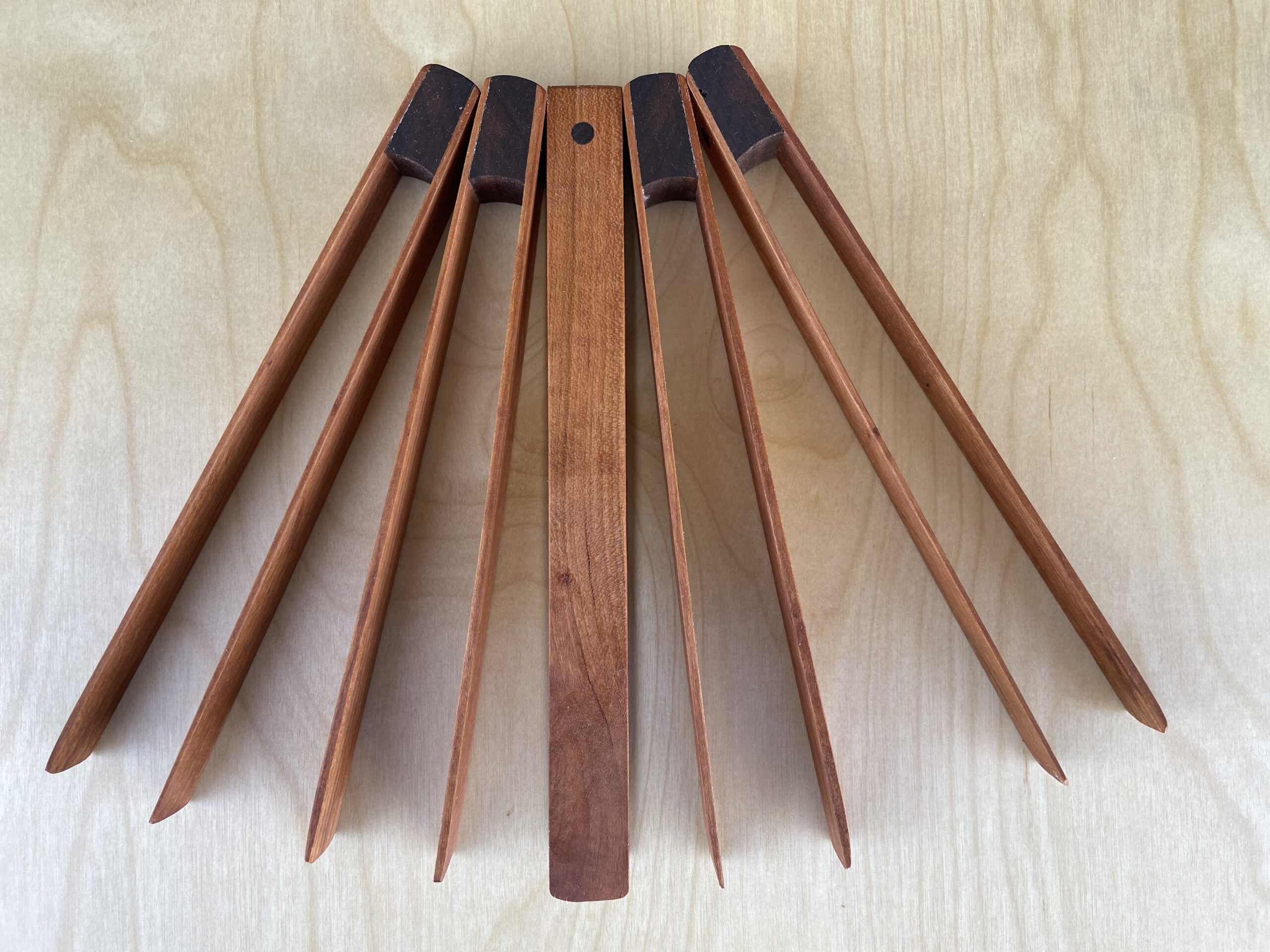 Wooden Toaster Tongs are made with 100% quality hardwood and are securely fastened with glue and dowels.  Finished with a durable and safe hypo-allergenic finish for a long life.  They are made with Cherry Wood and Walnut .
