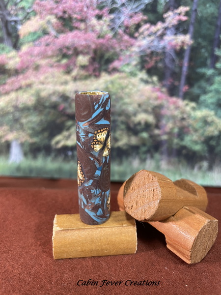 Polymer Clay Pen Blank Brown and Teal Flowers with Monarch Butterflies Designed for Bolt Action Pen Kit