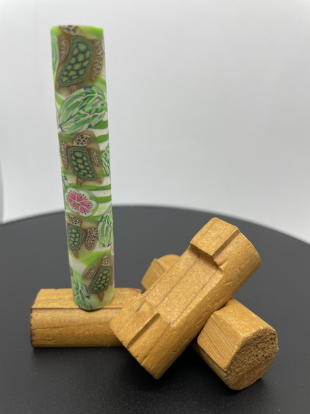 Polymer Clay Pen Blank Green and White Waves and Sea Turtles Pink Flowers with Monarch Butterflies