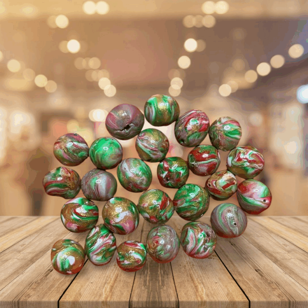 Watermelon Colors 10mm Polymer Clay Hand Rolled Beads