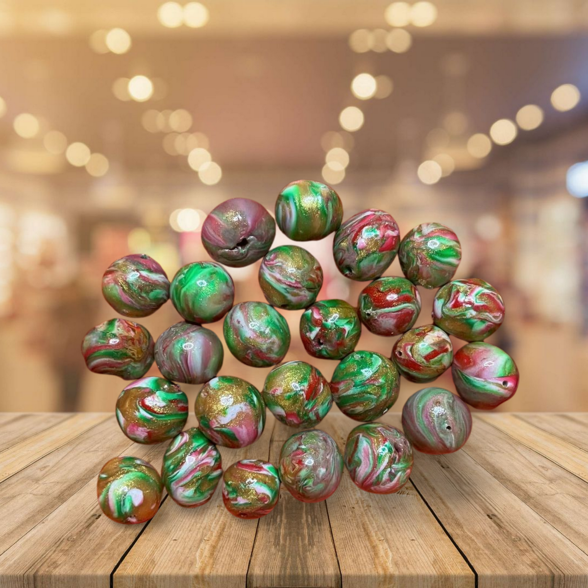 Watermelon Colors 10mm Polymer Clay Hand Rolled Beads